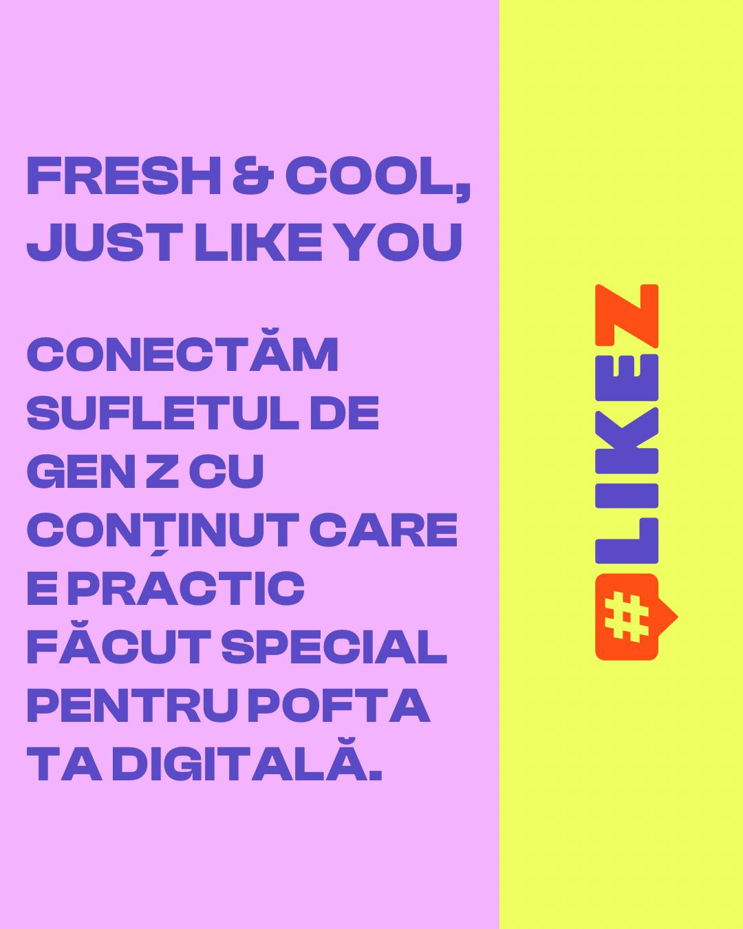 Likez.ro este sursa ta go-to de știri dedicate Generației Z, despre all things social media, influenceri români și nu numai, și trenduri virale în online. De aici afli informații despre creatorii tăi de conținut preferați și activitatea lor pe rețelele sociale și din viața de zi cu zi. Află, cu ajutorul publicației noastre, tot ce ar trebui să știi ca să ții pasul cu dinamismul cu care se mișcă lucrurile în viața acestora – și spune-ne mai multe despre ce alte aspecte din viețile lor ai mai vrea să descoperi. Fresh & cool, just like you – conectăm sufletul de Gen Z cu conținut care e practic făcut pentru pofta ta digitală. Pe www.likez.ro găsești secțiuni dedicate cu info despre TikTok Trends, vedete, știri în spotlight, filme și seriale ori recomandări de lifestyle (beauty, fashion, home & deco, self care, tech, travel), completate de Dicționarul Likez.ro, Fun Quizzes și Zile de naștere (afli ce vedete și influenceri își sărbătoresc ziua de naștere și când). See you!